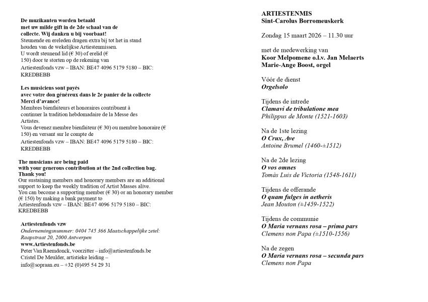 Volgende pagina: Artiestenmissen
