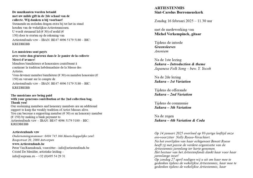 Volgende pagina: De artiestenmis : waar en wanneer ?