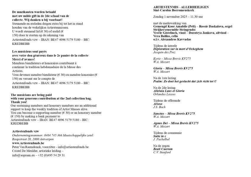 Volgende pagina: De artiestenmis : waar en wanneer ?